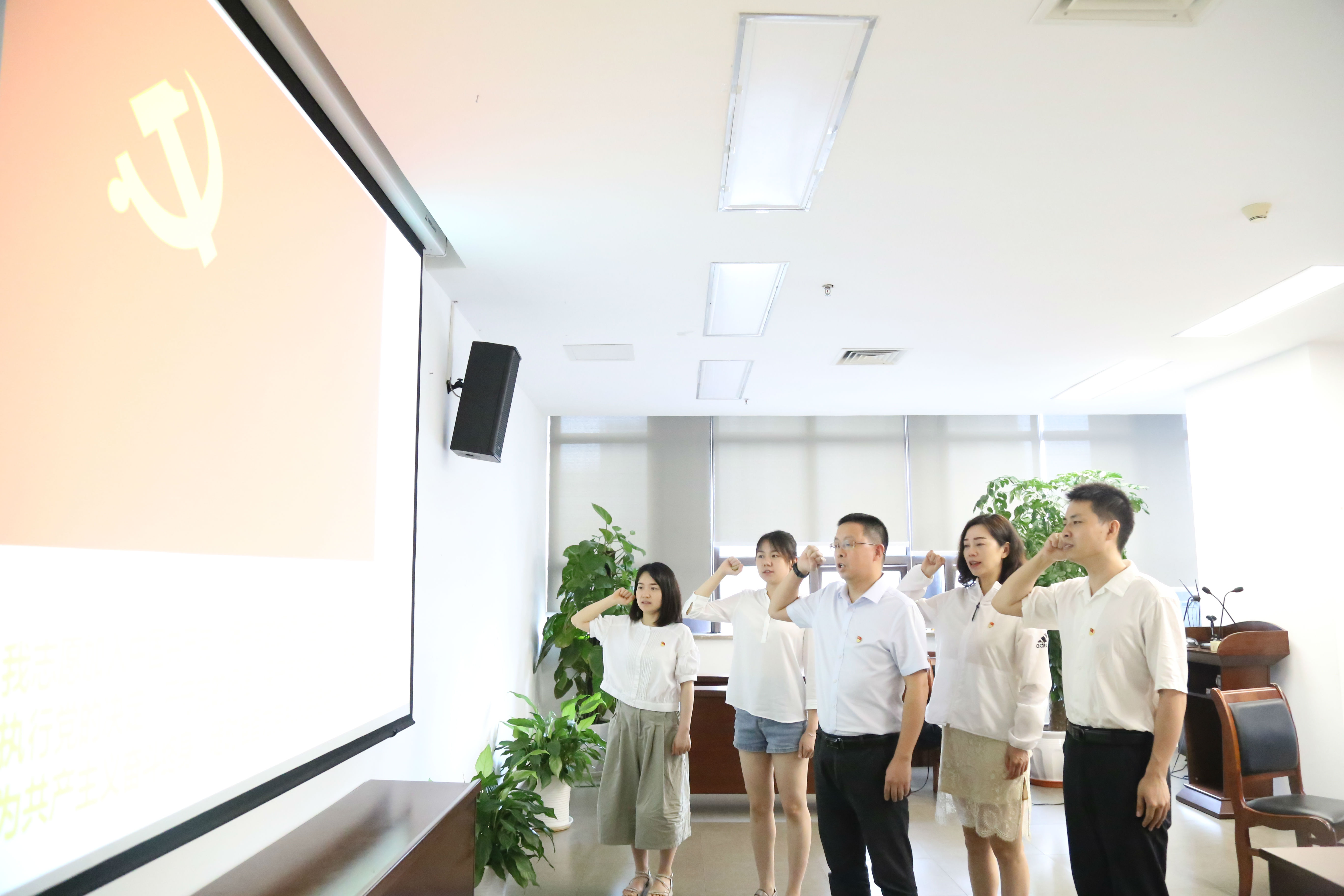 最后,支部全體黨員面向黨旗,莊嚴(yán)地重溫了入黨誓詞。