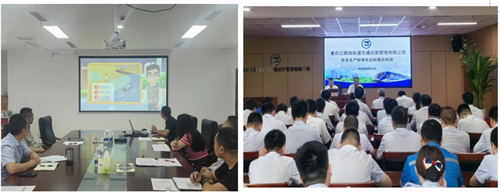 (一)開展安全教育培訓(xùn)活動。集團(tuán)系統(tǒng)組織開展“安全生產(chǎn)大家談”“班前會”“以案普法”等活動156場次,參與3502人次;組織觀看“安全生產(chǎn)月”主題宣傳片、《安全生產(chǎn) 責(zé)任在肩》《危險降臨》警示教育片、“人人講安全、個個會應(yīng)急—暢通生命通道”宣傳片等139場次;邀請重慶社安消防培訓(xùn)教官開展消防知識培訓(xùn),組織職工學(xué)習(xí)《火場逃生必備常識》專題教育片,開展針對火災(zāi)、城市內(nèi)澇自救互救技能培訓(xùn);江跳線運(yùn)營公司邀請安全專家以“安全生產(chǎn)標(biāo)準(zhǔn)化達(dá)標(biāo)建設(shè)”為主題,開展全員安全教育培訓(xùn)活動。